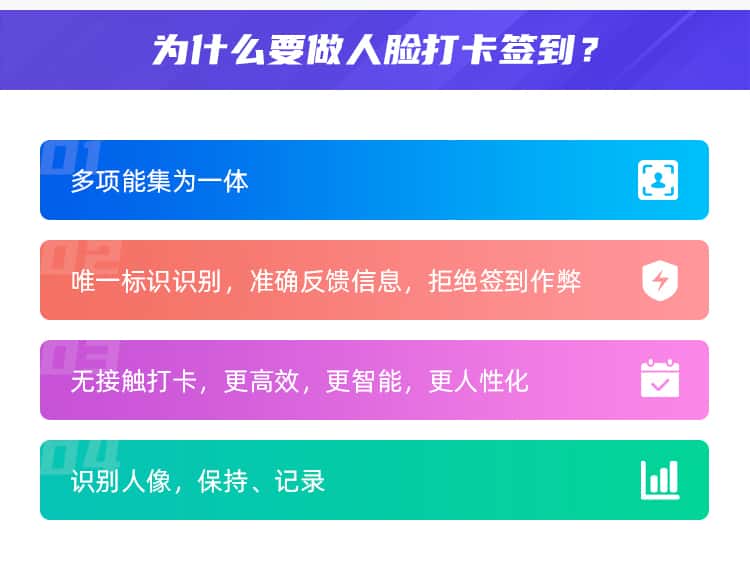 人脸识别技术:人脸签到系统通过使用高精度的人脸识别算法,识别并验证用户的身份。它可以从摄像头获取用户的面部图像,并与系统中事先录入的人脸数据进行比对,以确定用户身份的准确性和唯一性。